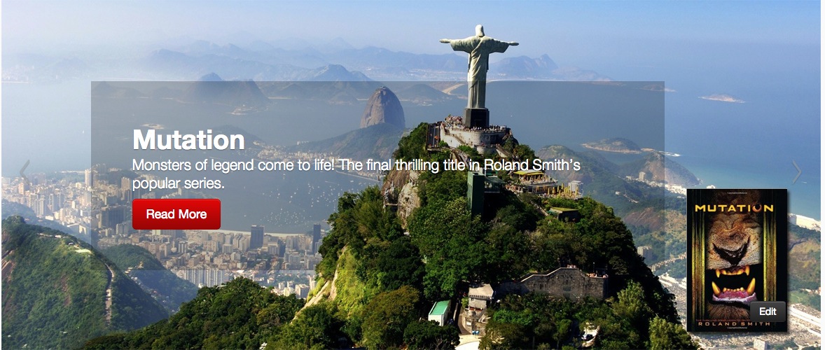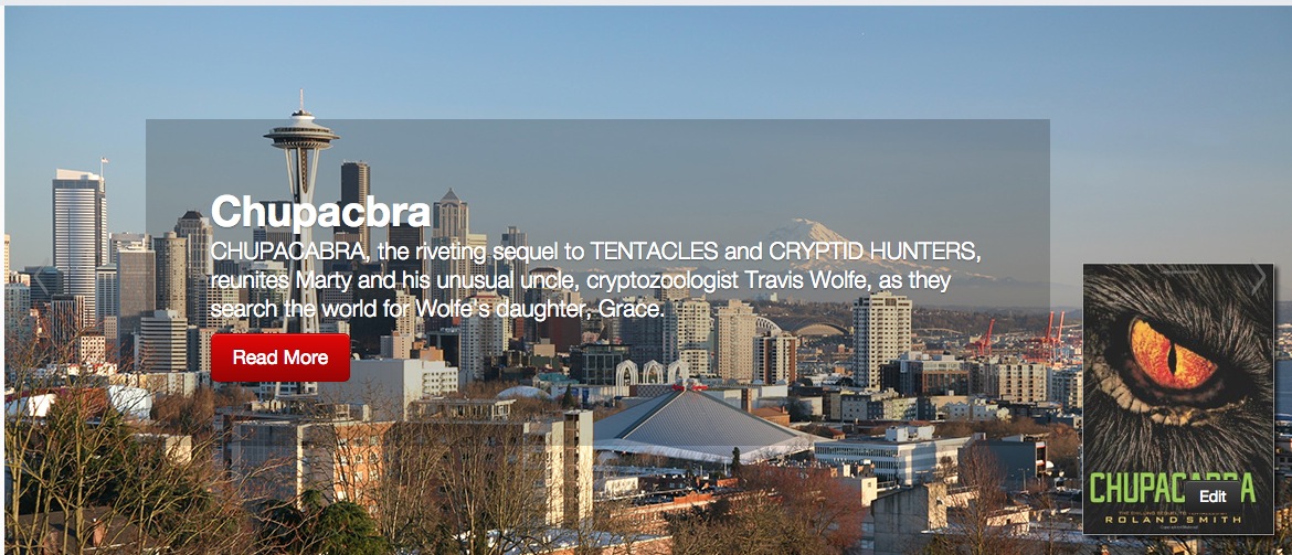 Motion certainly does get my attention, which is why many web sites today have rotating images along with words to draw us in, tell a story, and ask us to click for more information. Such is this case with author Roland Smith, where we promote his latest books on the Home page using a rotating slideshow:
