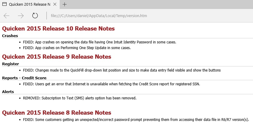Notice how in that final screen Quicken nagged me to upgrade from the 2015 to 2016 version, but at a price, so I declined. When financial software like Quicken is working OK at version 2015 release 10, I delay paying them extra money for version 2016 just because the app does everything that I want in version 2015. Use your own best judgement about having to pay for yearly releases of apps, however if you are offered a free release upgrade then do so.