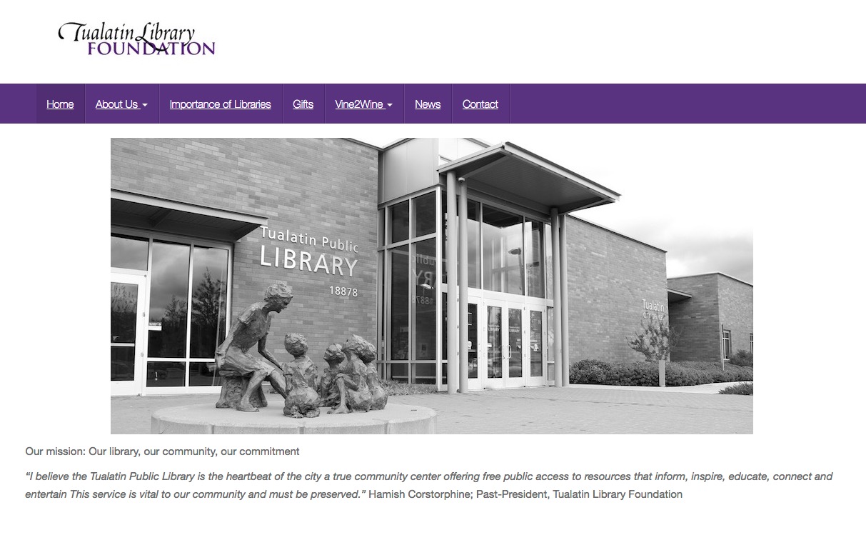I first met Wayne Welch a few years ago, and he is one of the many wonderful volunteers that organize the Tualatin Library Foundation. They needed a web site for several reasons:
