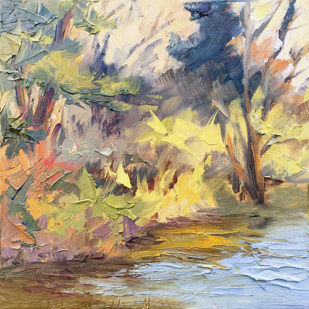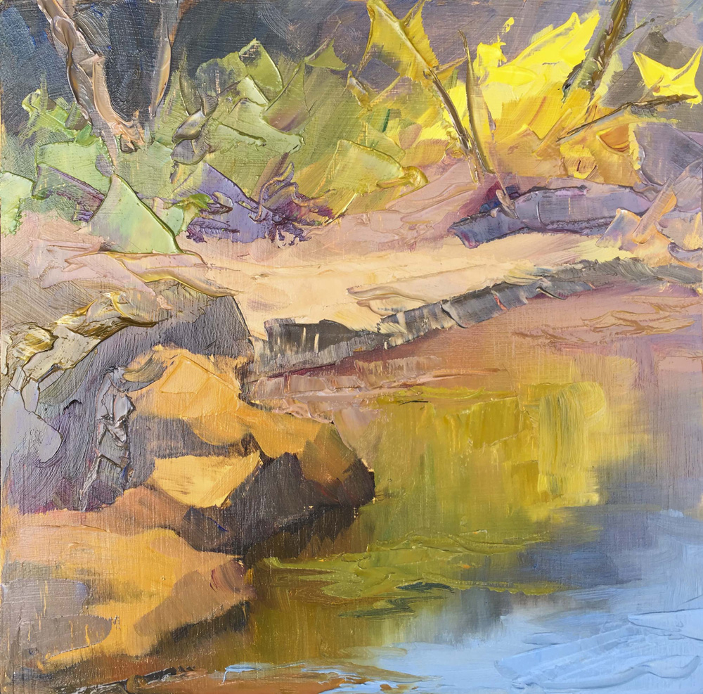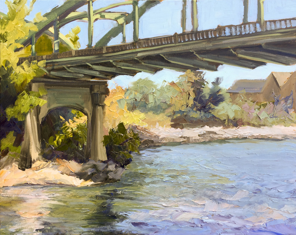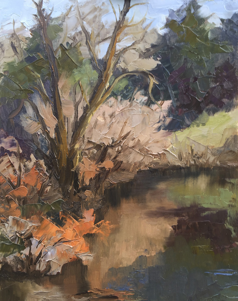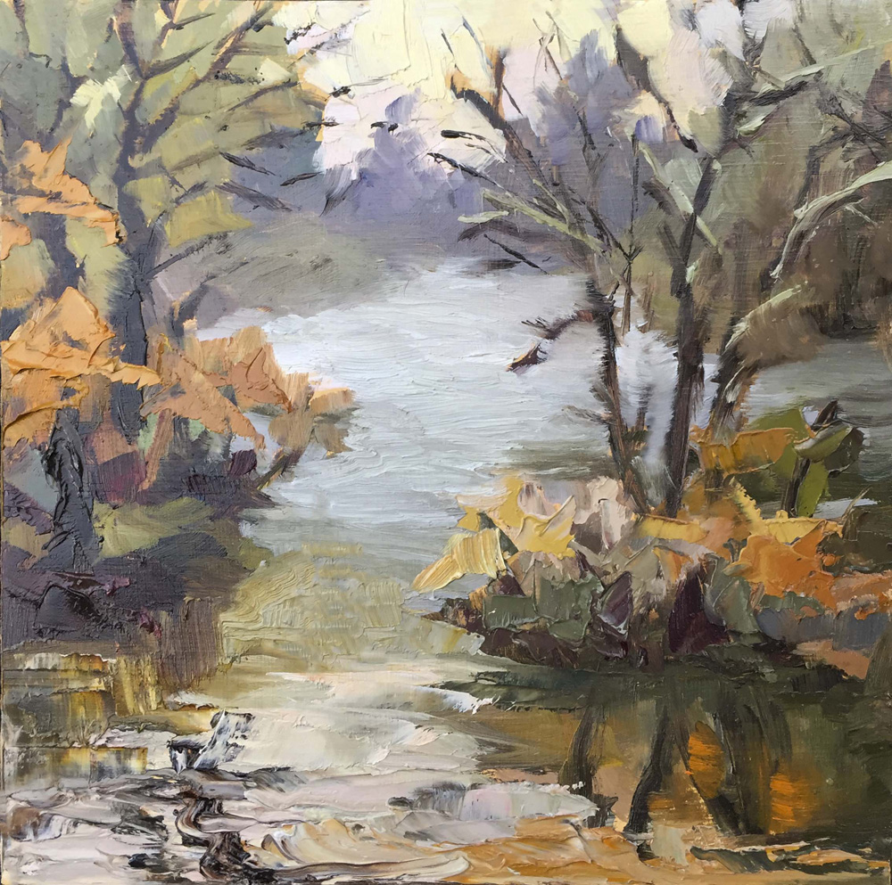 Rest at George Rodgers Affilati Park Fields Bridge afternoon Water is high but calm Fields Bridge Last of Fall reflections 20″ x 16″ Oil on Linen. Available for purchase. 8″ x 10″ Oil on Canvas. Sold.